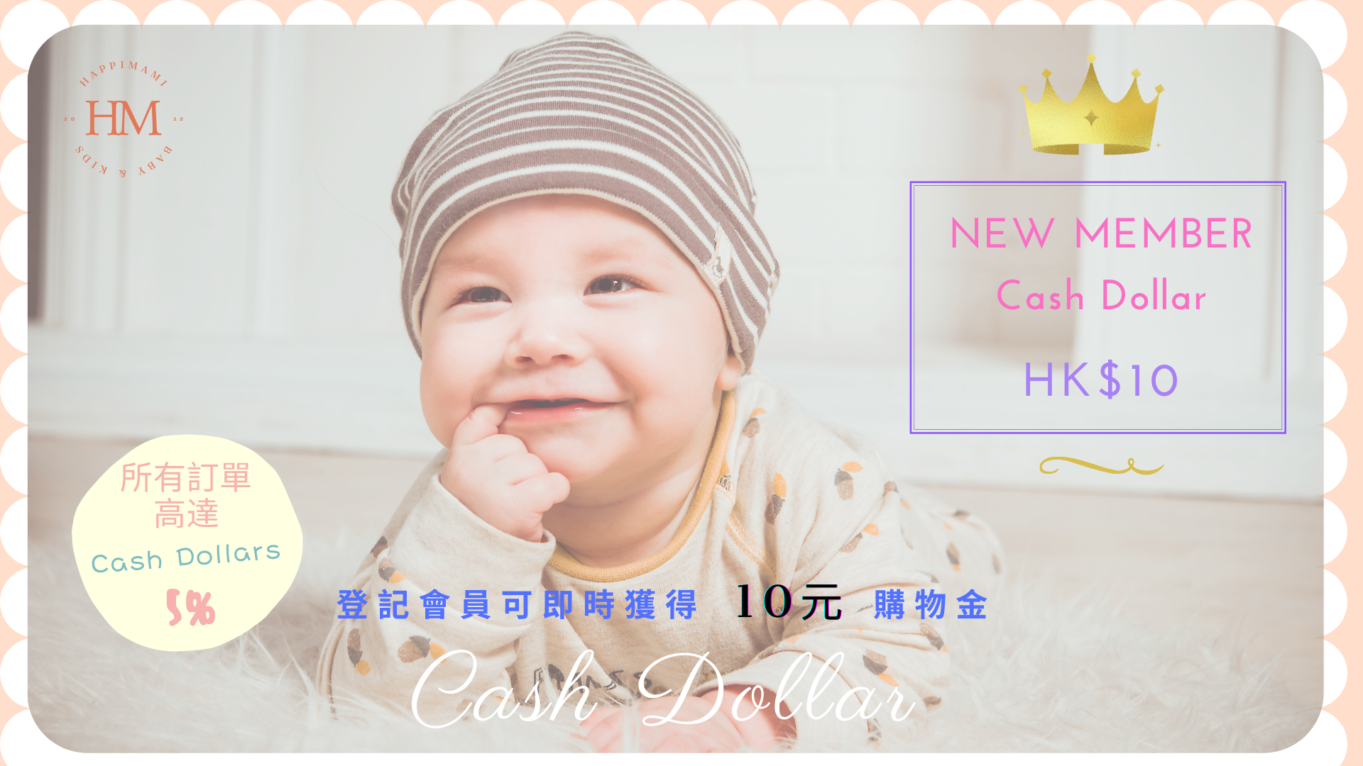 A newly registered member can obtain HK$10 Cash Dollars. The Cash Dollars will be automatically added to your member account and can be used immediately when the first order net amount reaches HK$100.
